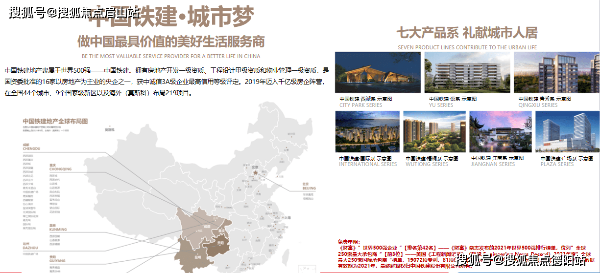 中国铁建前身为中国人民铁道兵,2007年成立中国铁建股份有限公司,2008年在香港上市,目前在全国44个城市、9个国家级新区以及海外(莫斯科)布局219项目,2021年《财富》“世界500强企业”排名第42位、“全球250家最大承包商”排名第3位、并拥有4大奇迹作品,380天竣工人民大会堂,成昆铁路,世界第一条磁悬浮商业运营线,青藏铁路,中国铁建是全球最具实力、规模的特大型综合建设集团之一