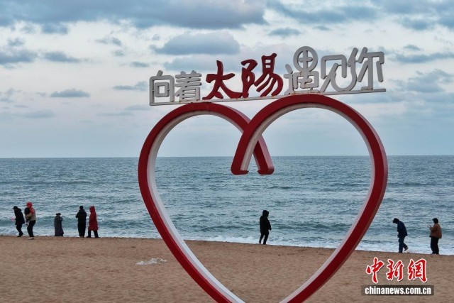12月1日,山东日照,市民游客在万平口景区金色沙滩游玩。冷空气过境后日照正式入冬,但城市街巷仍留深秋余韵。金色沙滩与碧绿大海交相衬托,各色树叶斑斓交织,色彩错落有致,绘就了一幅如诗如画的自然画卷。(无人机照片)