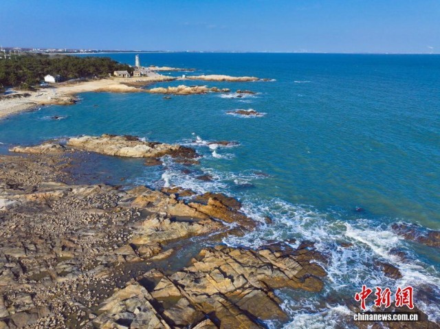 12月1日,山东日照,航拍任家台礁石公园。电视剧《生万物》在此取景,随着该剧热播,吸引了众多游客前来打卡。(无人机照片)