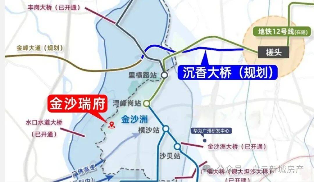 金沙洲大桥、大坦沙大桥、沉香大桥(规划)、同心桥(在建)、水道口大桥、黄岐大桥、丰岗大桥、碧江大桥(规划中)全面环绕。据了解,沉香大桥预计明年开工建设,未来通车后,从金沙北部到白云新城仅5公里,畅达交通环境,为生活加速。