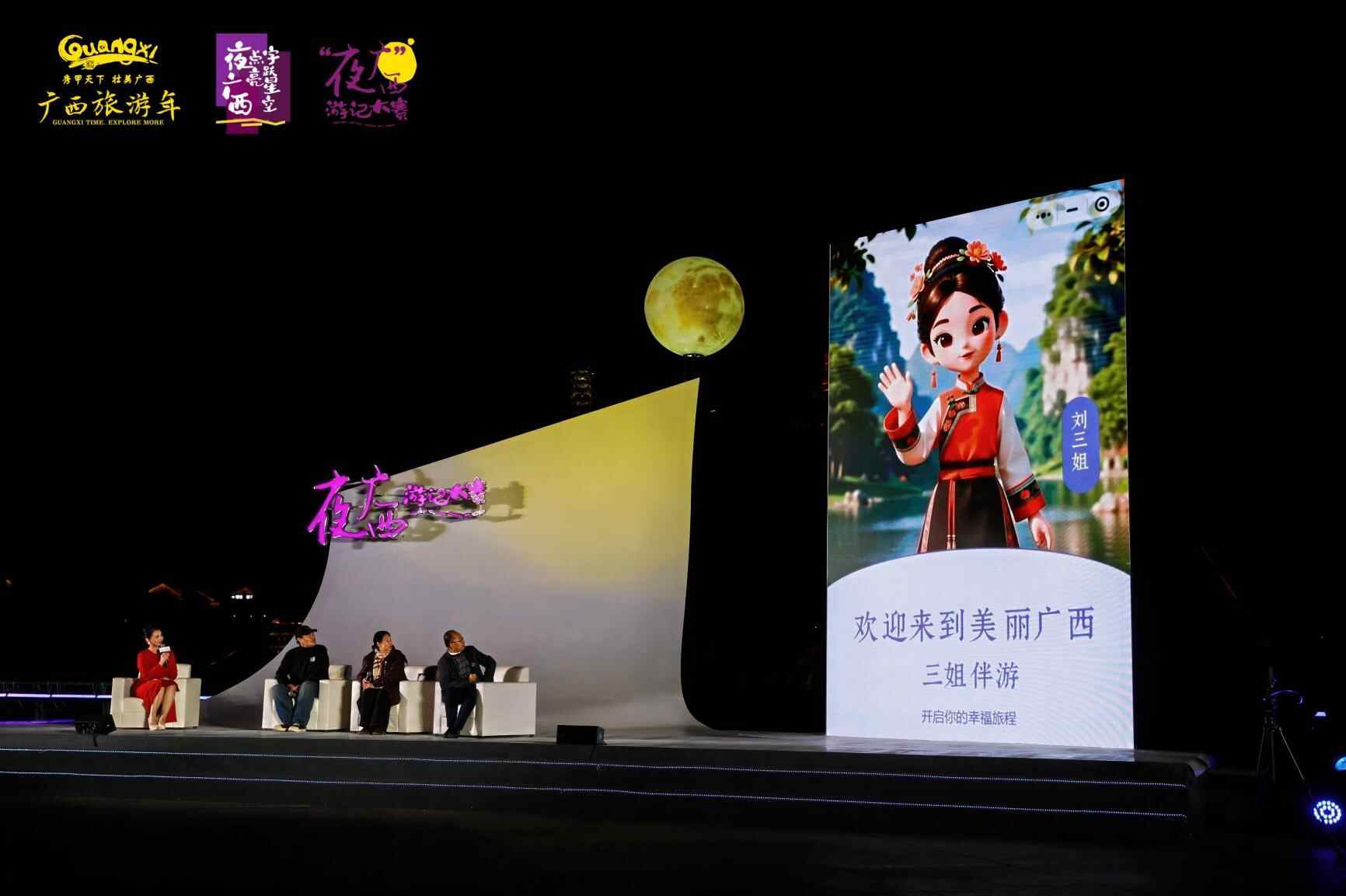 活动现场还精心打造了沉浸式互动体验区,包括“夜广西”心动美文取用墙、“夜广西”美文互动球、“三姐伴游”AI线路生成体验区、“我AI广西夜”光影互动站等,让观众在参与中感受文学的魅力与科技的温度。