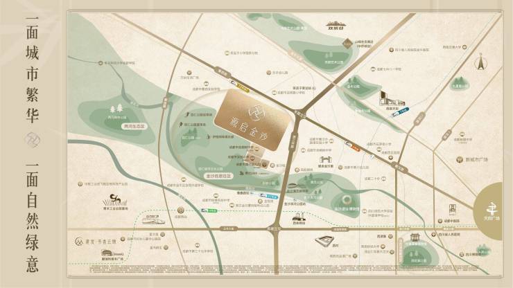 交通网络四通八达,西三环路、蜀西路等城市主干道与已运营的地铁2号线号线形成立体交通体系。生活配套方面,金沙演艺中心、天府艺术公园、山姆会员商店(华侨城店)等高端商业文化设施环伺,满足业主全方位生活需求。