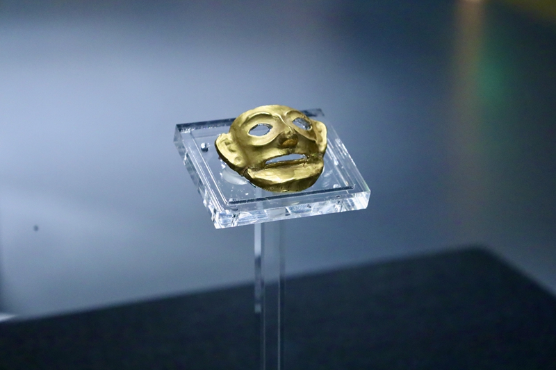 本次展览中,金沙遗址博物馆带来金人面像、鱼纹金带、铜人形器、镂空铜眼形器、石虎、管钻痕玉琮、凹刃玉凿,以及象牙、卜甲等47件/套展品,展现了古蜀人崇尚自然、信奉万物有灵的文化面貌和太阳崇拜、黄金崇拜的精神信仰。