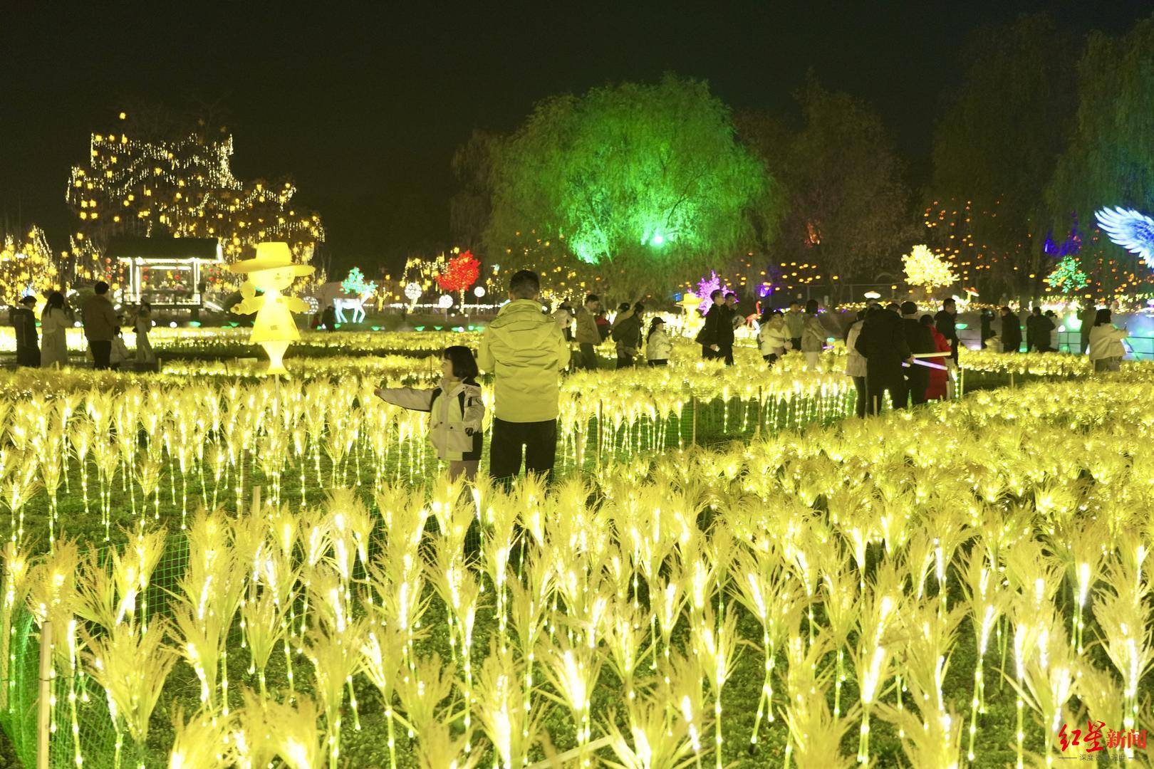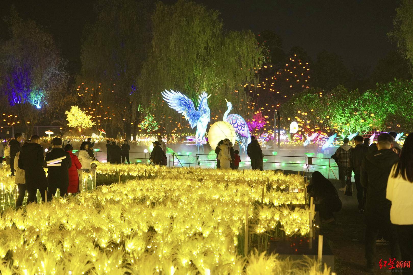 游园会人气持续攀升,现场游客们的好评声不绝于耳。在四川大学读研究生的刘同学通过网络社交平台“种草”了解到活动,她点赞道:“麦田灯组很漂亮,保安全程维持秩序,体验感很好,已经推荐给朋友了。”成都市民税先生夫妇则计划带父母再来:“麦田灯组很有氛围,打铁花很特别,整体很惊艳,值得推荐。”