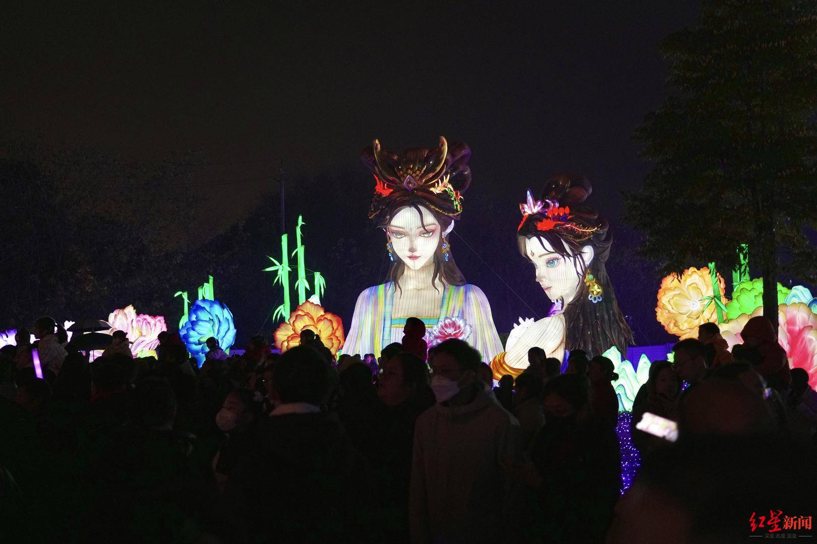 记者了解到,本届灯会也是目前成都已举办灯会中规模较大的一场,布展面积近10万平米,耗时3个月精心打造。主创团队源自自贡灯会,汇集广西、北京等多地优秀创作力量。