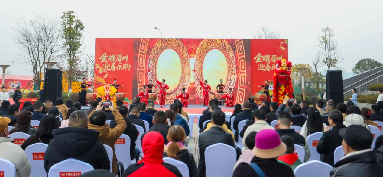 作为本次全市迎春消费季的启动仪式所在地,彭山区结合其“中国长寿之乡”的文化底蕴和文商旅体融合发展优势,同步启动了以“金耀眉州·寿乡嗨购”为主题的彭山迎春消费季系列活动。精彩的非遗展演、歌舞表演点燃了节日气氛。市区相关领导出席并致辞,共同参与了寓意繁荣的金沙启动仪式。活动现场,彭山文旅推荐官重点推介了彭祖山等特色旅游资源及冬季旅游线路,并向市民发放了相关景区门票。同时,还向现场观众介绍了彭山独具特色的非遗美食,邀请大家品味“寿乡”风味。