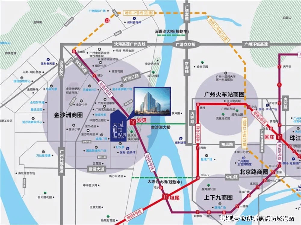保利金沙大都汇正位于这一黄金交汇点——白云区金沙洲路与环洲三路交汇处,距离广州市中心(以珠江新城为参照)直线分钟。更关键的是,项目所处片区已被纳入《广州市国土空间总体规划(2021-2035年)》重点发展单元,未来将打造为“产城融合、生态宜居”的现代化新城。
