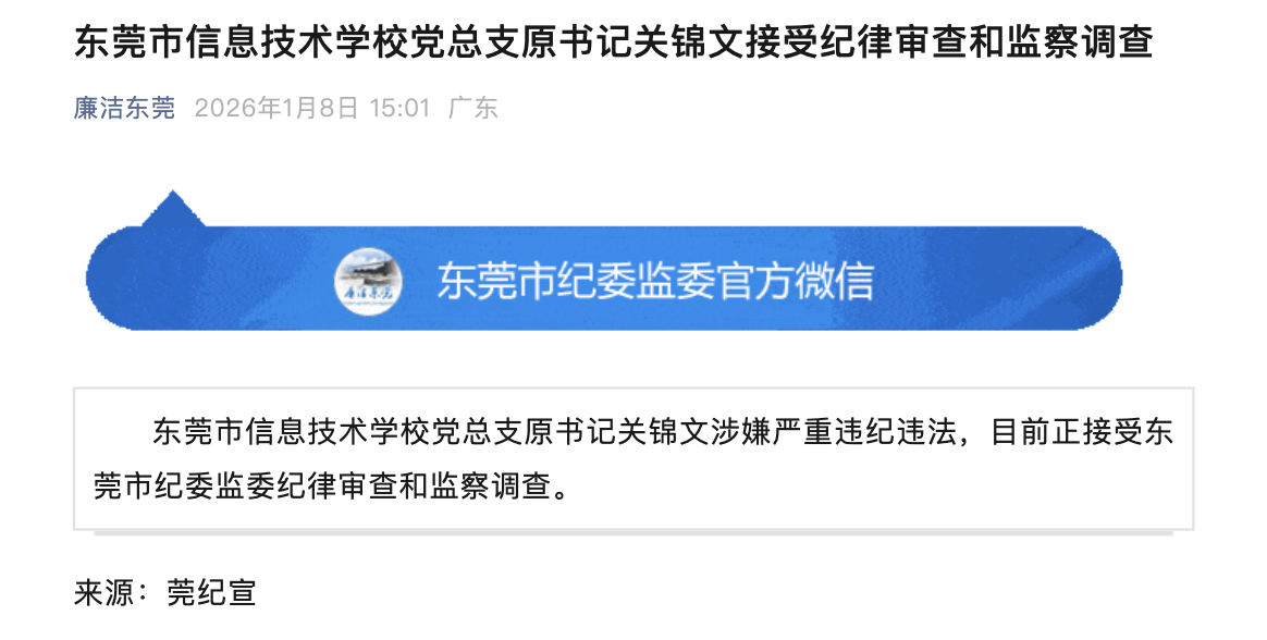 2026-01-10金沙娱乐,金沙娱乐城官网,金沙娱乐城app,金沙娱乐城,金沙集团官网,金沙娱乐城注册,金沙官网,金沙app,澳门金沙娱乐城官网,金沙网站,金沙官网,金沙集团,澳门金沙官网,澳门金沙网站,澳门金沙注册据东莞市纪委监委官方公众号“廉洁东莞”1月8日消息,东莞市信息技术学校党总支原书记关锦文涉嫌严重违纪违法,目前正接受东莞市纪委监委纪律审查和监察调查。