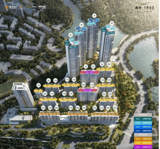 超高层户型涵盖96㎡三房、125㎡四房与141㎡四房,总层数达47层,部分楼层可俯瞰湖景与山景,景观视野绝佳。96㎡三房户型布局紧凑实用,适合刚需家庭,客厅阳台设计最大化收纳景观,让业主在家就能欣赏到自然美景;125㎡与141㎡四房户型空间开阔,采用大面宽设计,采光效果出色,部分户型配备观景飘窗,进一步提升居住品质。底叠户型面积为150-200㎡,涵盖三房、四房,一楼带庭院,空间私密性强,适合追求高端居住体验的家庭,庭院可根据需求打造为花园、休闲区等,满足个性化居住需求。
