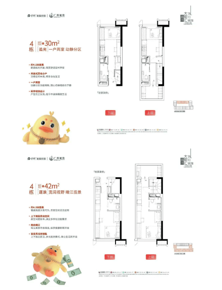 建面约 30 - 42㎡的户型设计,约 4.5 米层高,空间灵动百变。双钥匙管理模式让上下空间互不干扰,分水表分电表,可实现买一租二,自住与投资一步到位。无论是工作收租两不误,还是以租养贷,都能轻松实现,开启 “双薪” 人生。项目优势:亮点突出,性价比高