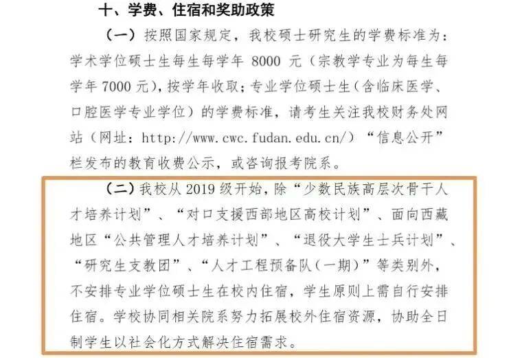 复旦大学也在2024年的招收攻读硕士学位研究生章程中提出“不安排专业学位硕士生在校内住宿,学生原则上需自行安排住宿”。