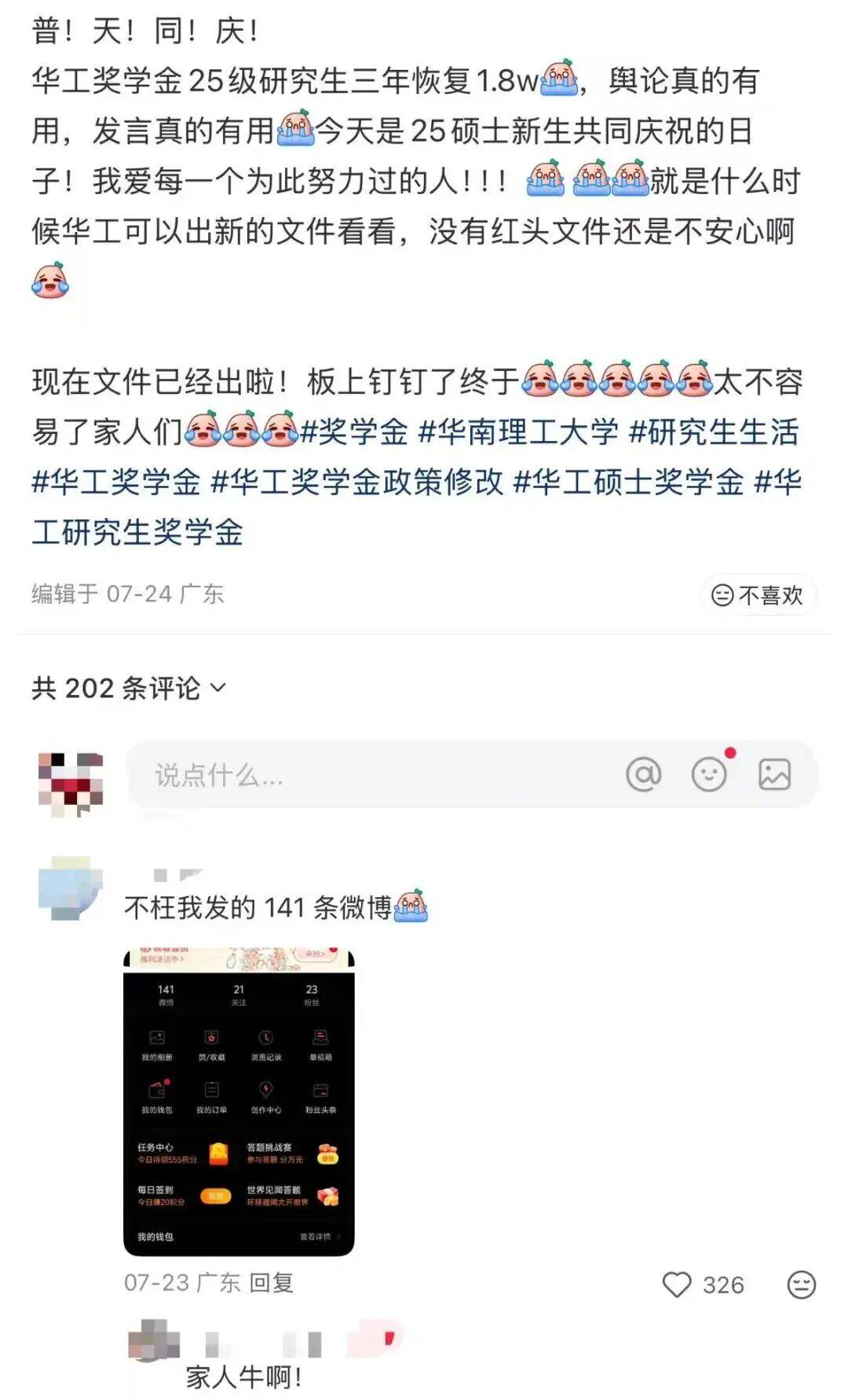 消息一出,引发学生多方吐槽、控诉。努力维权之后,校方最终撤回决定,承诺25级研究生维持原有奖学金政策,新规暂缓。