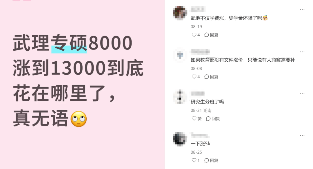 对于专硕来说,奖学金缩减、不包住宿、学费大涨,每一件单拎出来都是读研路上巨大的绊脚石,尤其是对家境不优渥的同学来说,更是会在无形中加重读研的压力。