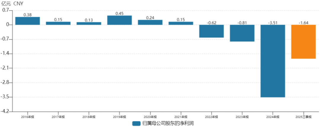 然而行业变迁的速度远超市场预期,古鳌科技上市后不久,外部环境便发生了剧烈变化,传统金融机具市场迎来前所未有的收缩压力。其间,古鳌科技也曾尝试过多次收购,从元宇宙、数字人到太阳能光伏、芯片等热门领域都有涉及,但这些并购大多停留在公告层面,无法线年,公司归母净利润分别亏损0.62亿元、0.81亿元和3.51亿元,三年累计亏损近5亿元。2025年前三季度,公司实现营业收入1.09亿元,同比下降49.58%;实现归母净利润-1.64亿元。