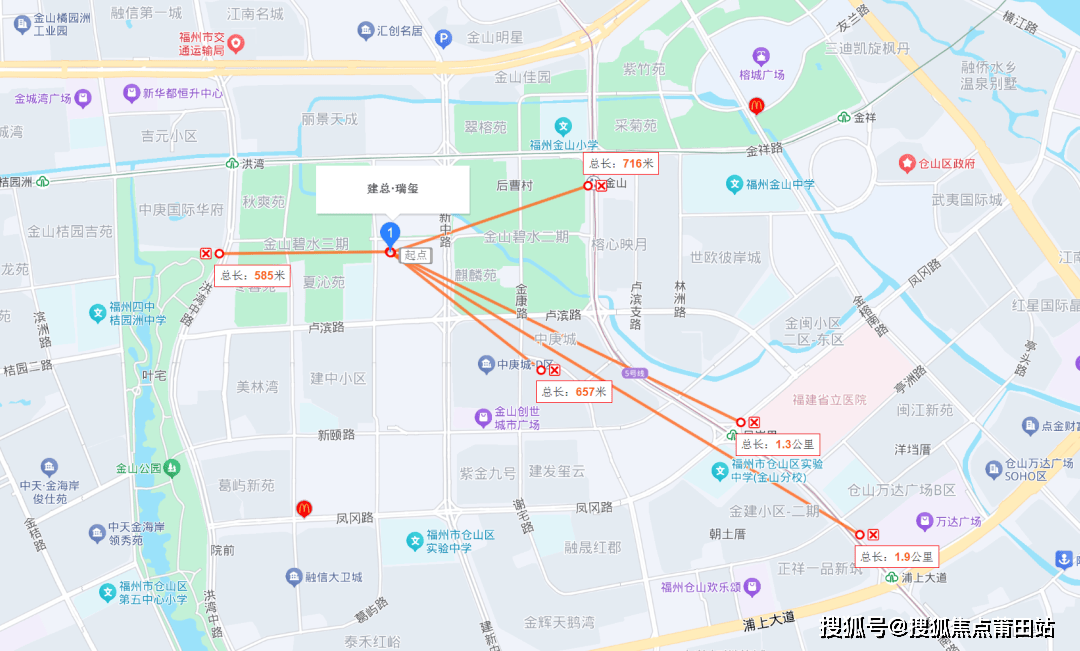 这片区域配套名字都带“金山”——金山地铁站(2&5号线换乘)、金山公园、金山省立医院、金山万科里、金山小学、金山中学... 真正的金山核心配套,都在它2公里范围内!比如直线距离: