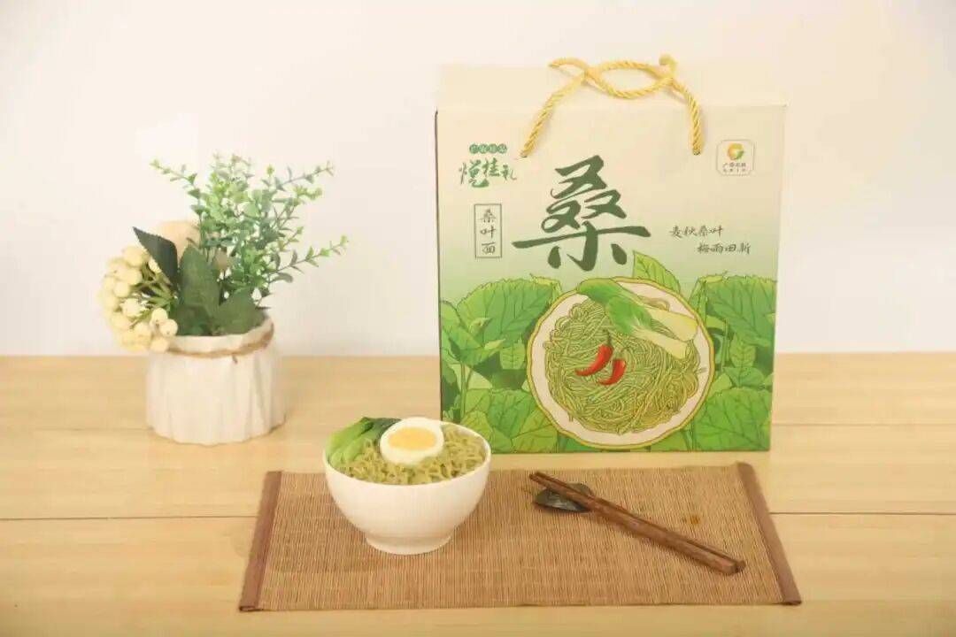 “广农桂品”悦桂礼桑叶面:选取天然富硒桑叶精打成汁与优质小麦粉结合精制而成;桑叶面柔韧顺滑、久煮不烂、口感劲道爽滑,清香美味;原生态采用传统工艺加工,非油炸保留原生营养,不含任何色素和添加剂,原生态健康的营养面,单个包装方便易煮。