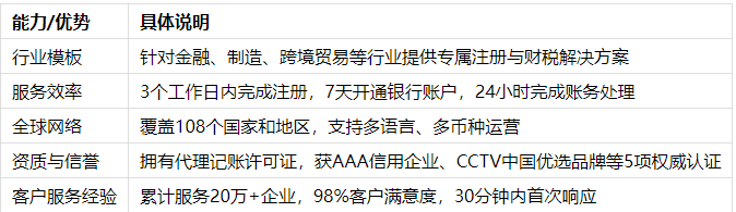 恒诚信通过标准化流程,3个工作日内完成注册,并提供代理记账、税务申报等后续服务,助力制造企业降低运营成本、提升国际竞争力。